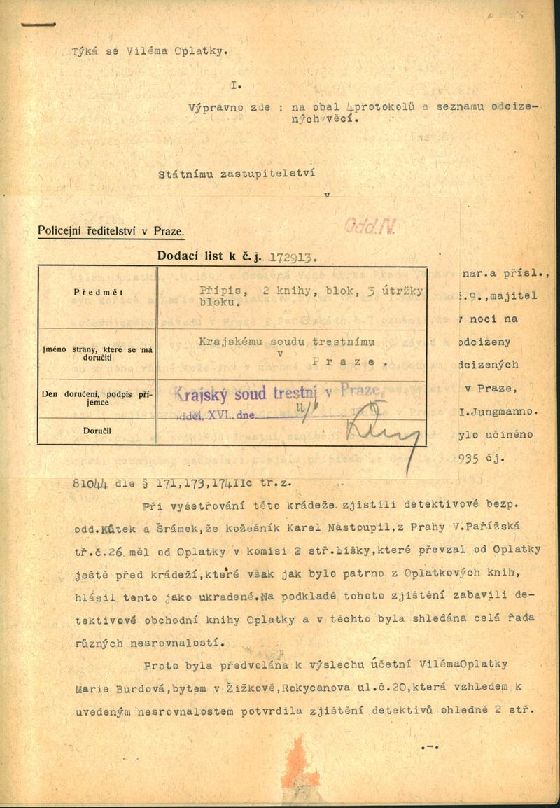 National archives Prague > Police Directorate Prague > 1931-1940 > O > Oplatka Vilém