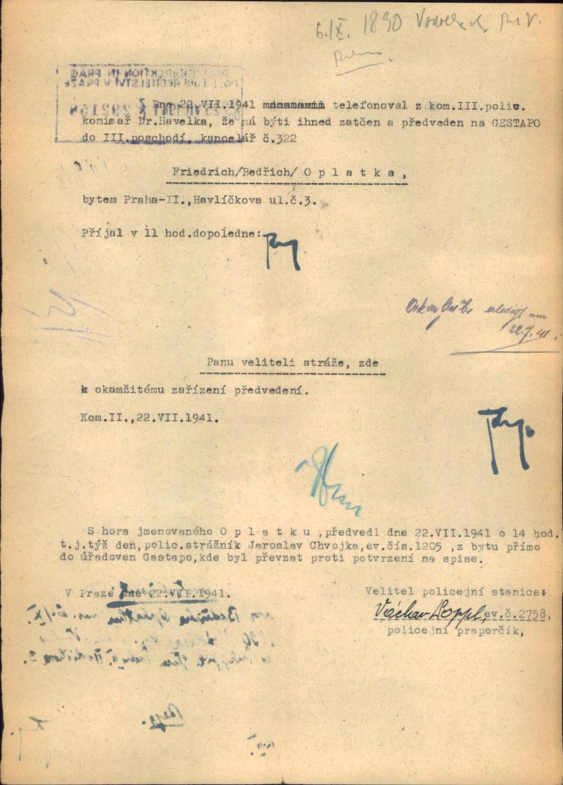 National archives Prague > Police Directorate Prague > 1941-1950 > O > Oplatka Bedřich
