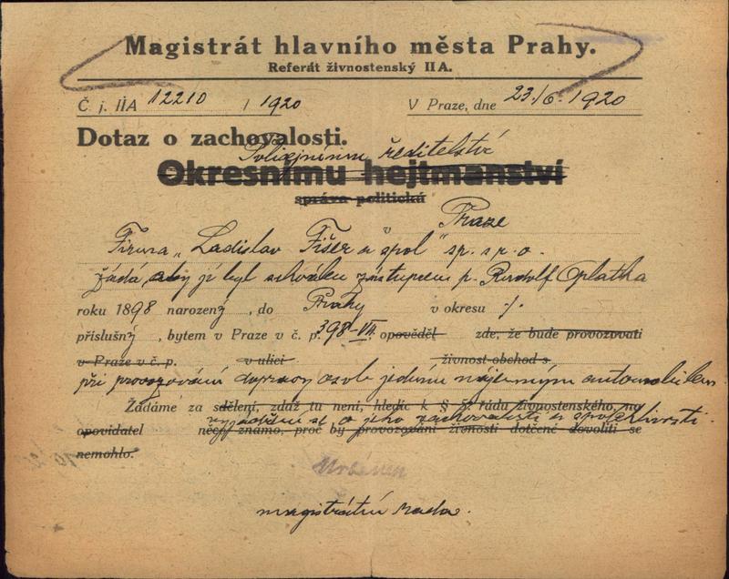 National archives Prague > Police Directorate Prague > 1941-1950 > O > Oplatka Rudolf