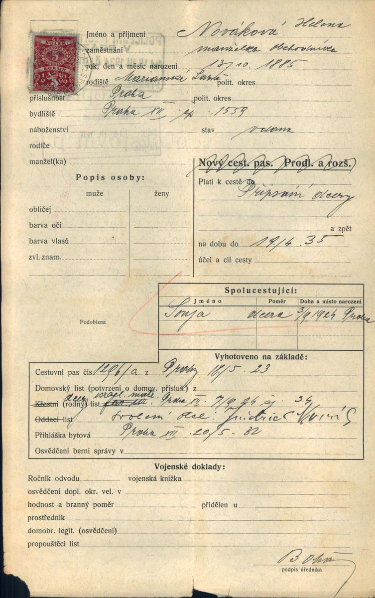 National archives Prague > Police Directorate Prague > 1931-1940 > N > Nováková Helena