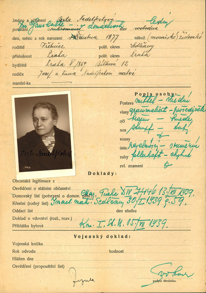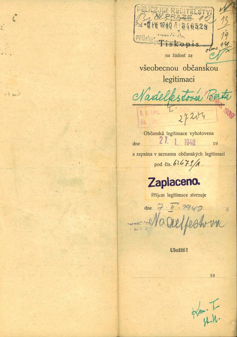 Nadelfestová Berta: Žádost o vydání občanské legitimace