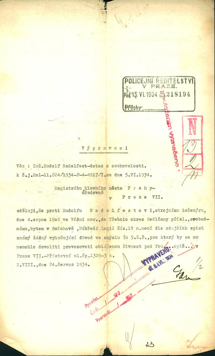 National archives Prague > Police Directorate Prague > 1931-1940 > N > Nadelfest Rudolf