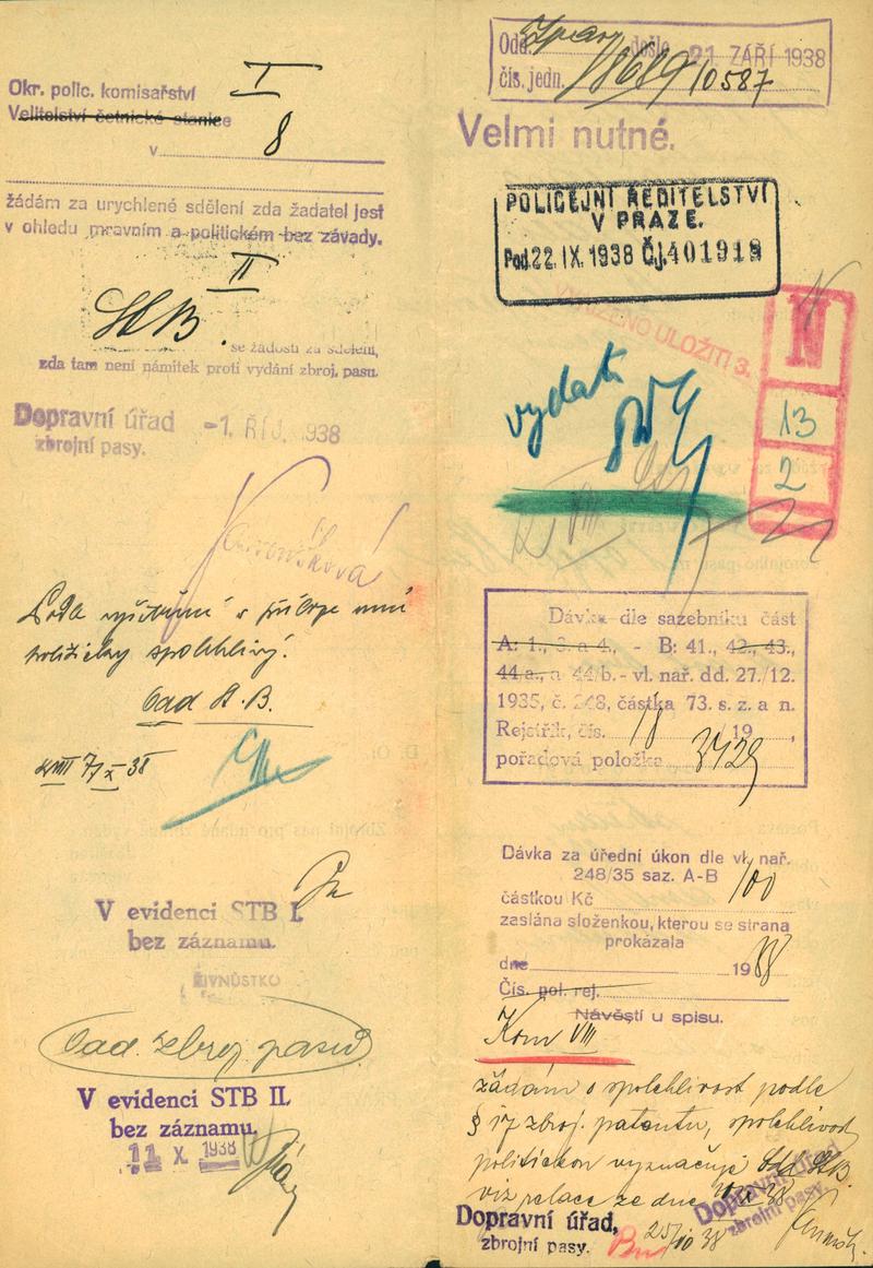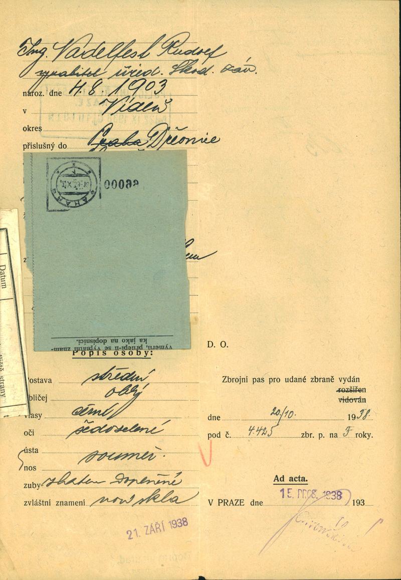 Nadelfest Rudolf: Žádost o vydání zbrojního pasu