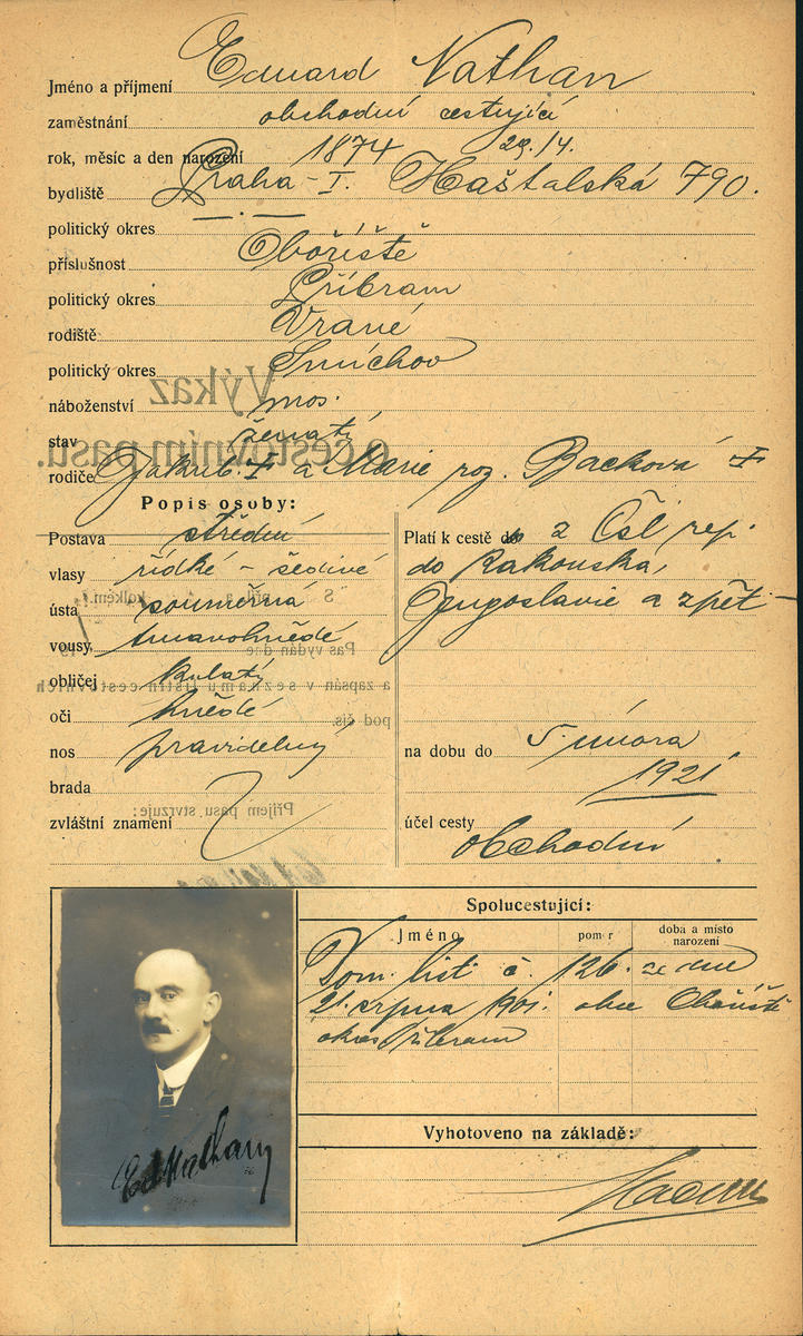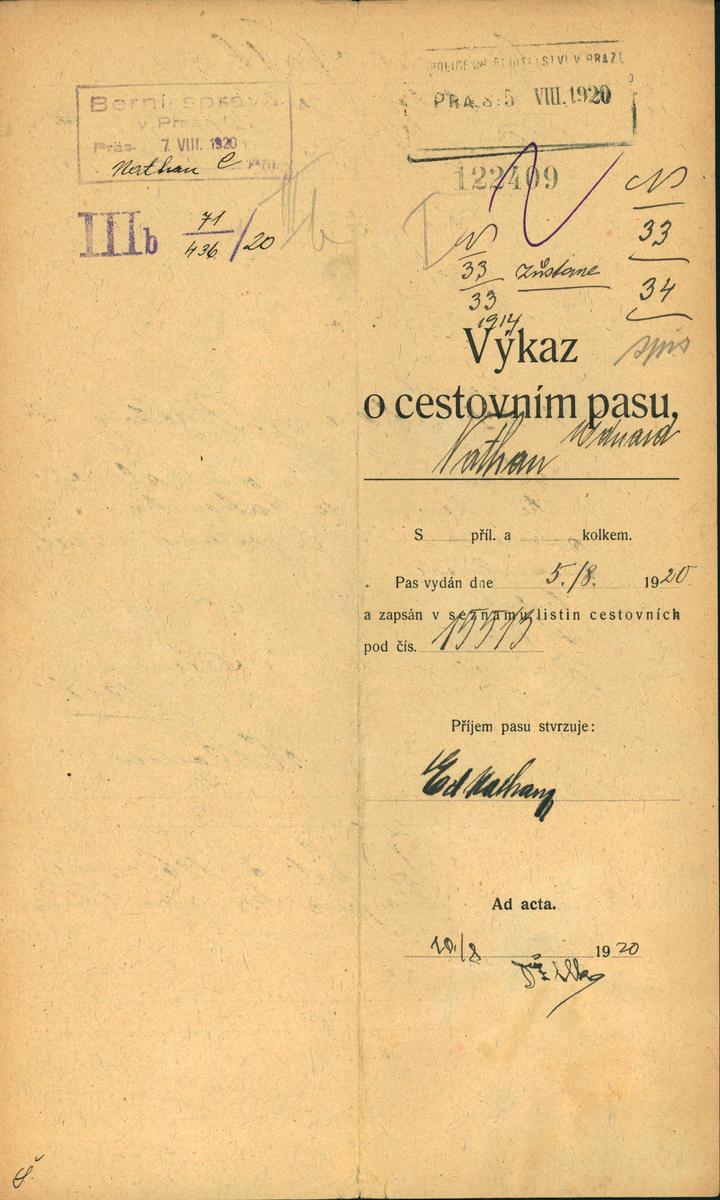 Nathan Edvard: Žádost o vydání cestovního pasu