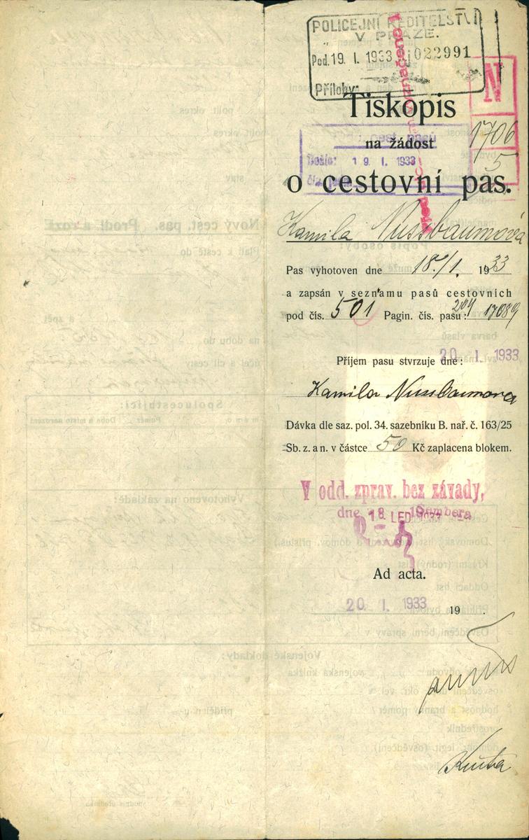 Nussbaumová Kamila: Žádost o vydání cestovního pasu