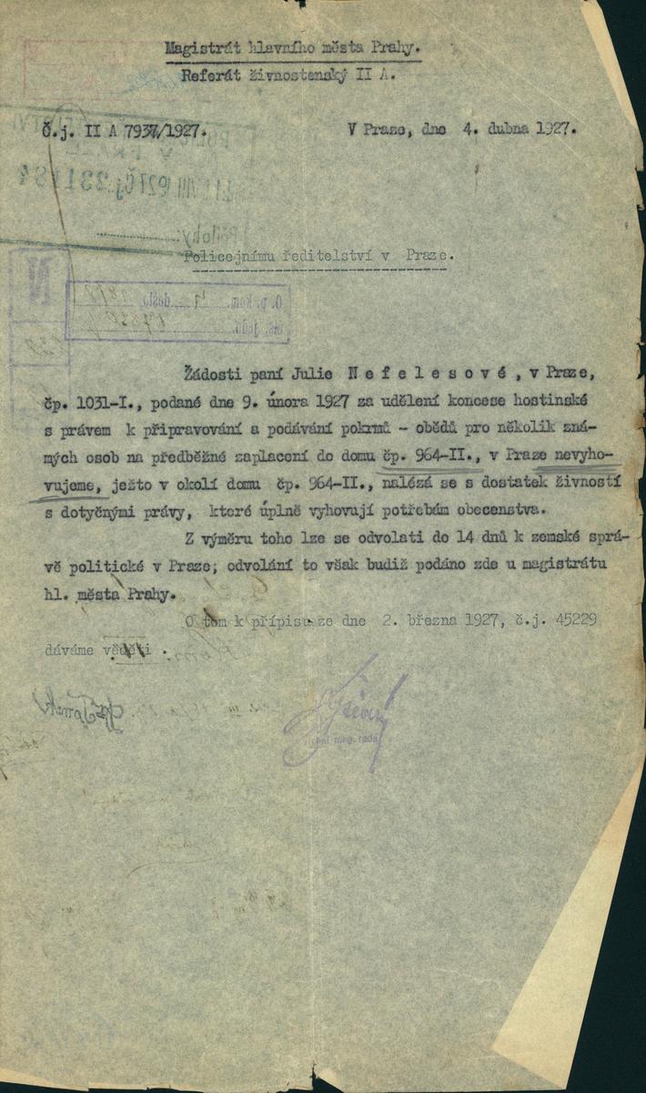 Nefová Julie: Vyjádření k žádosti o udělení koncese