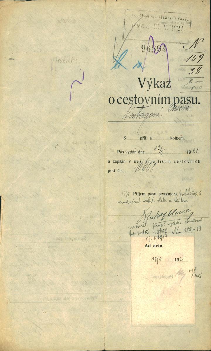 Neubergová Adéla: Žádost o vydání cestovního pasu