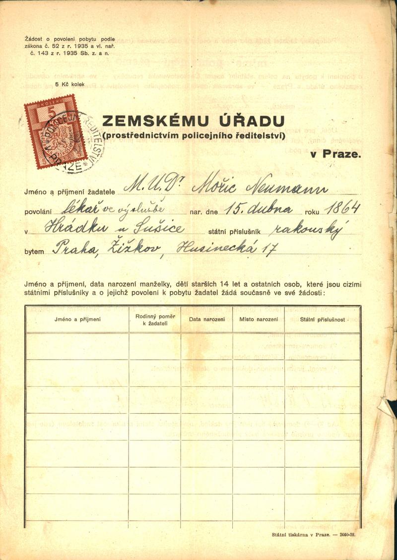 National archives Prague > Police Directorate Prague > 1931-1940 > N > Neumann Moritz