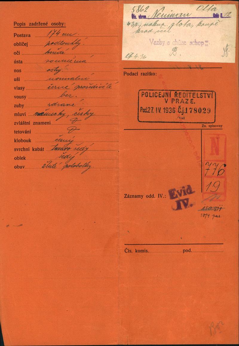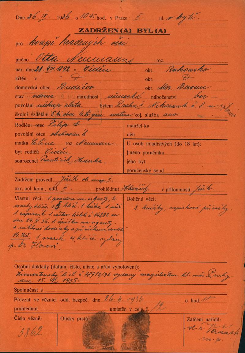 Neumann Otto Stefan: Protokol o zadržení