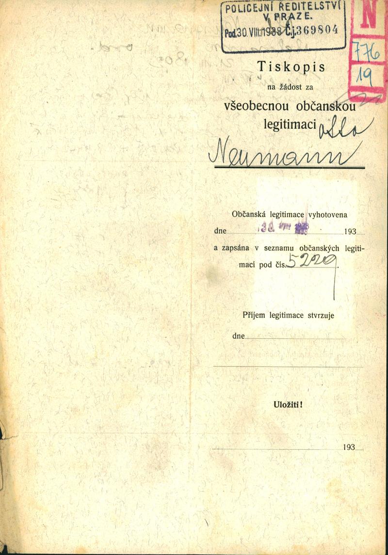 Neumann Otto Stefan: Žádost o vydání občanské legitimace