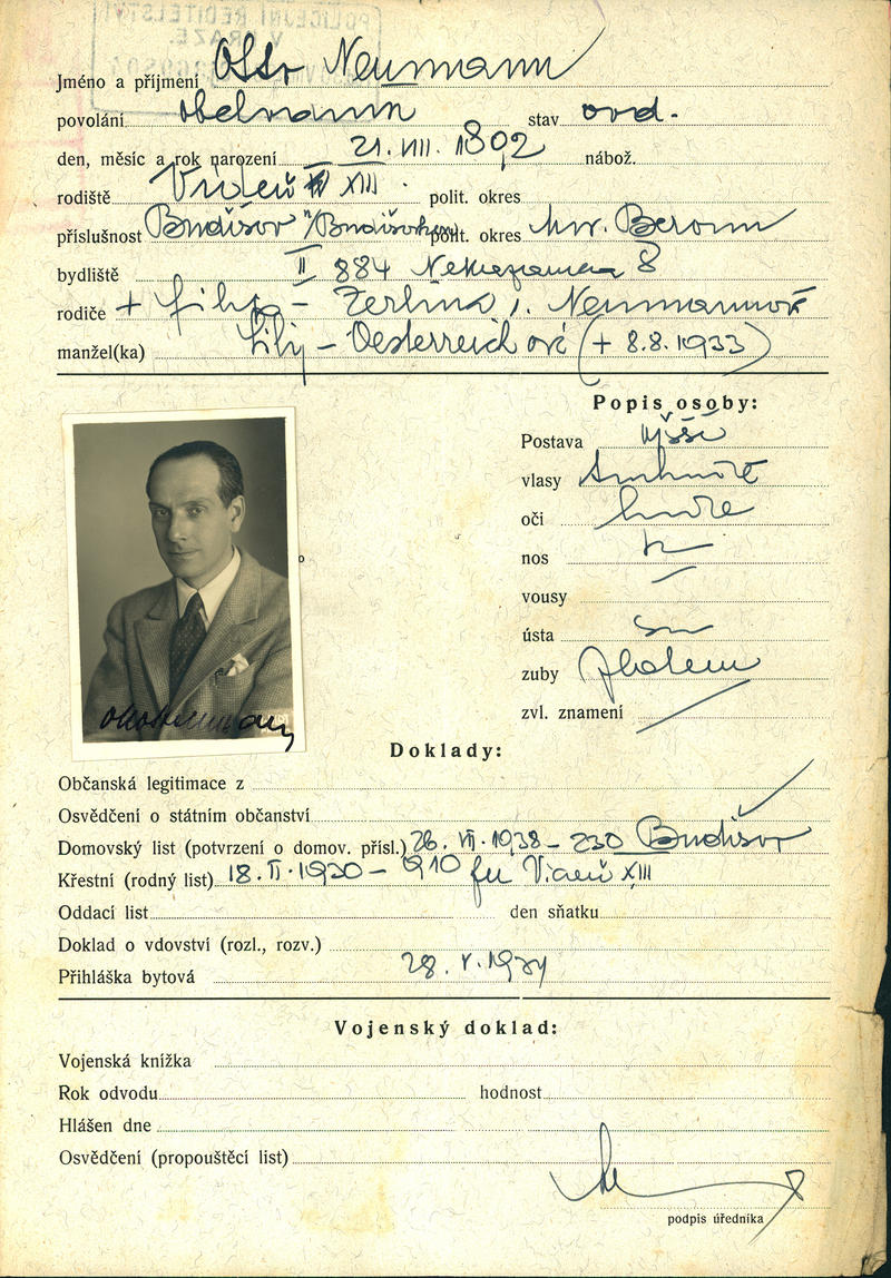 National archives Prague > Police Directorate Prague > 1931-1940 > N > Neumann Otto Stefan