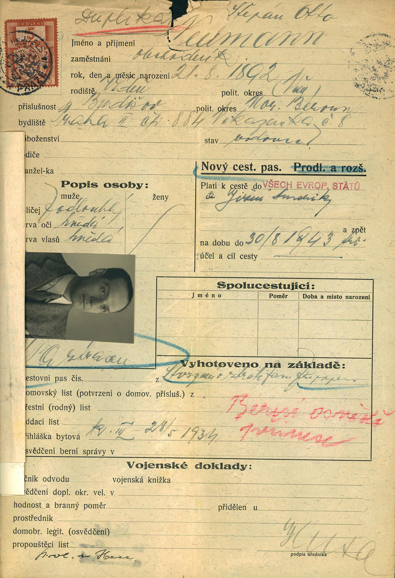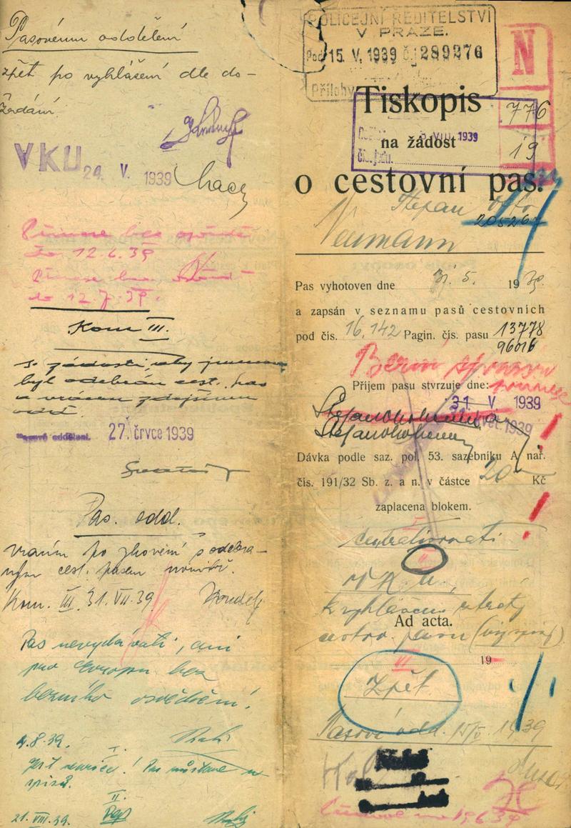 Neumann Otto Stefan: Žádost o vydání cestovního pasu