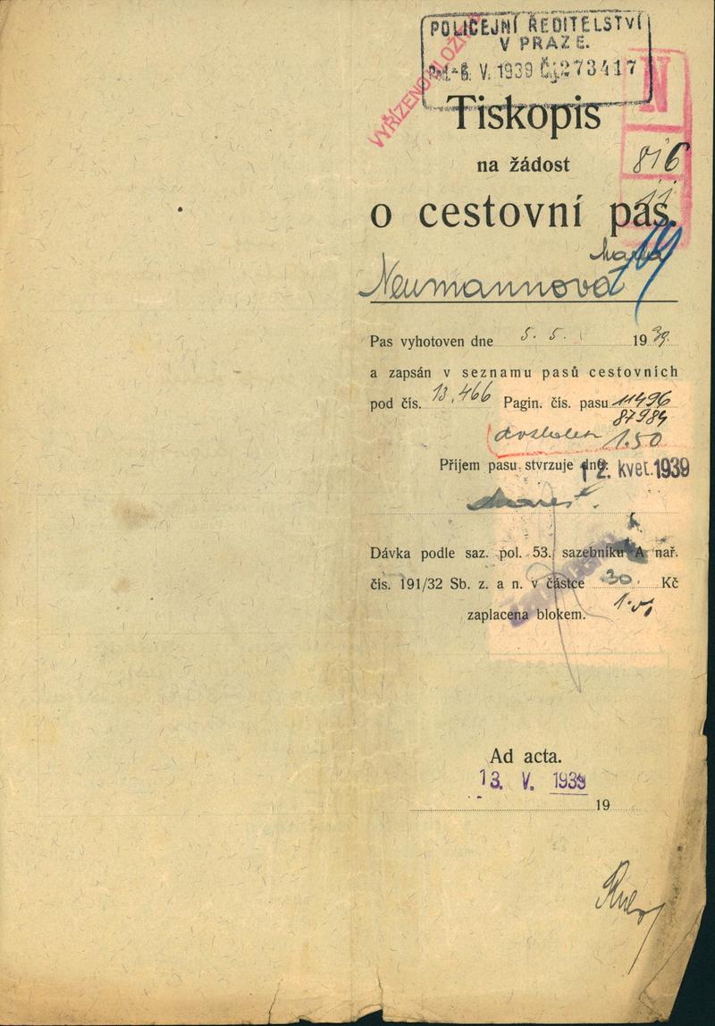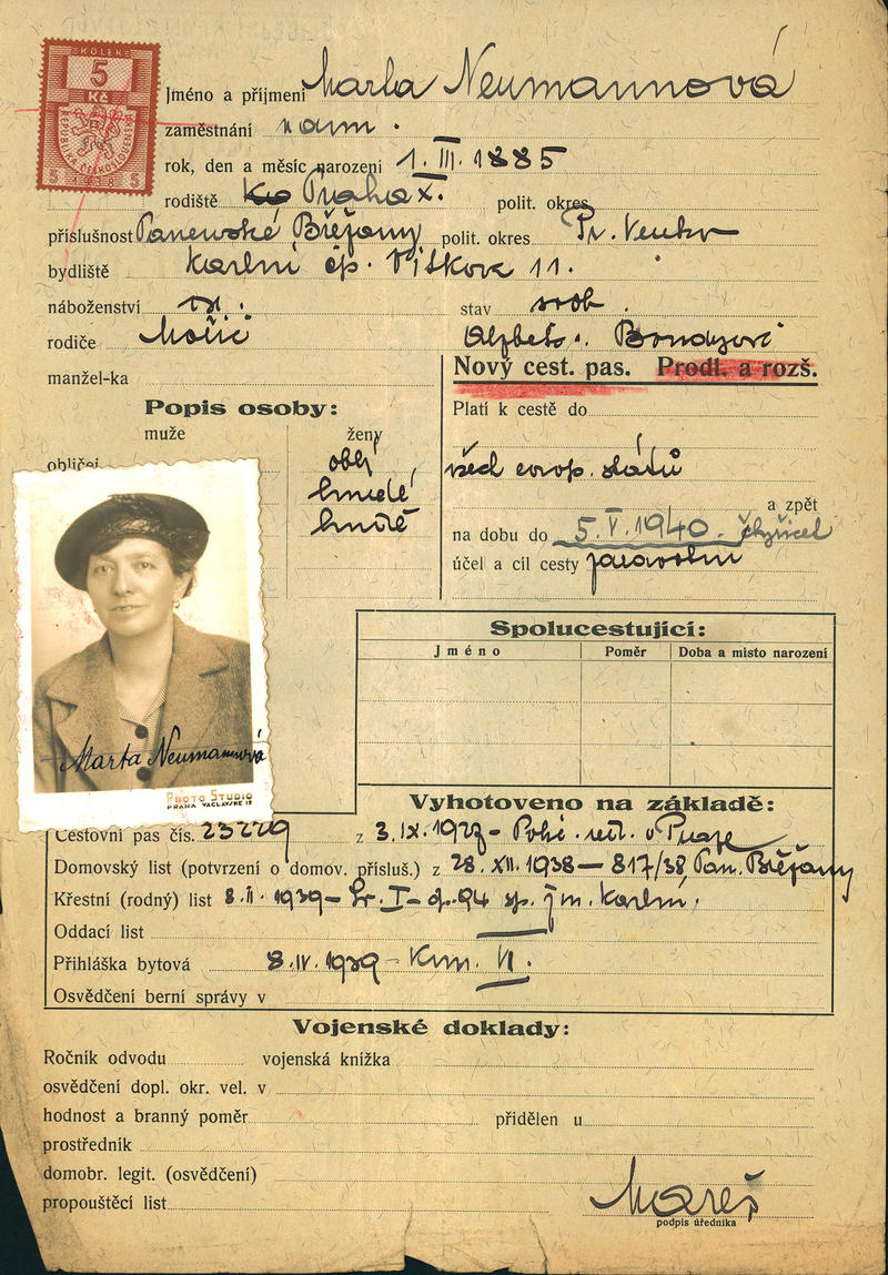 Neumannová Marta: Žádost o vydání cestovního pasu