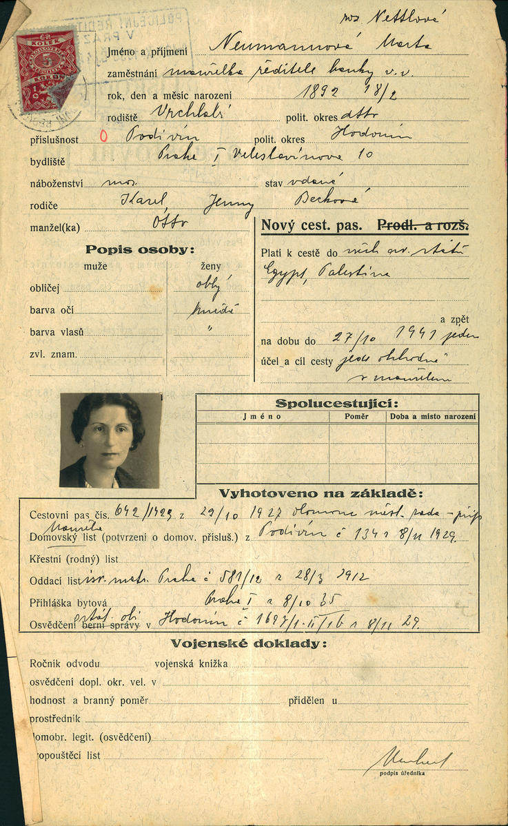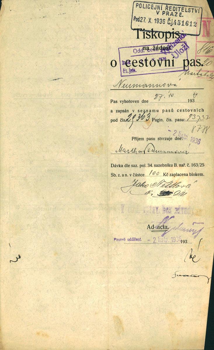 Neumannová Marta: Žádost o vydání cestovního pasu