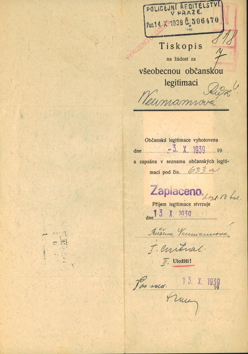 Neumannová Růžena: Žádost o vydání občanské legitimace