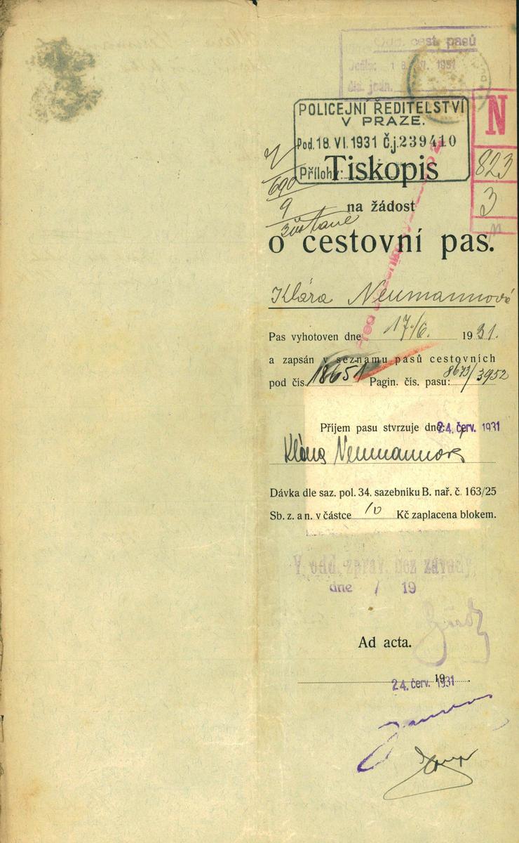 Neumannová Klara: Žádost o vydání cestovního pasu