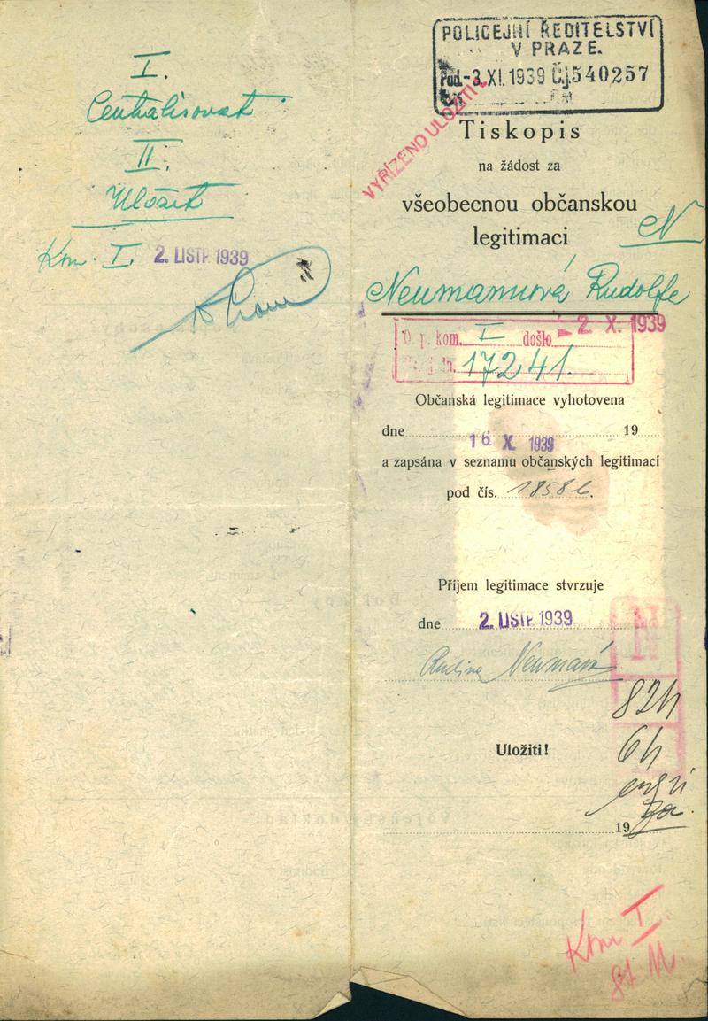 Neumannová Rudolfina: Žádost o vydání občanské legitimace