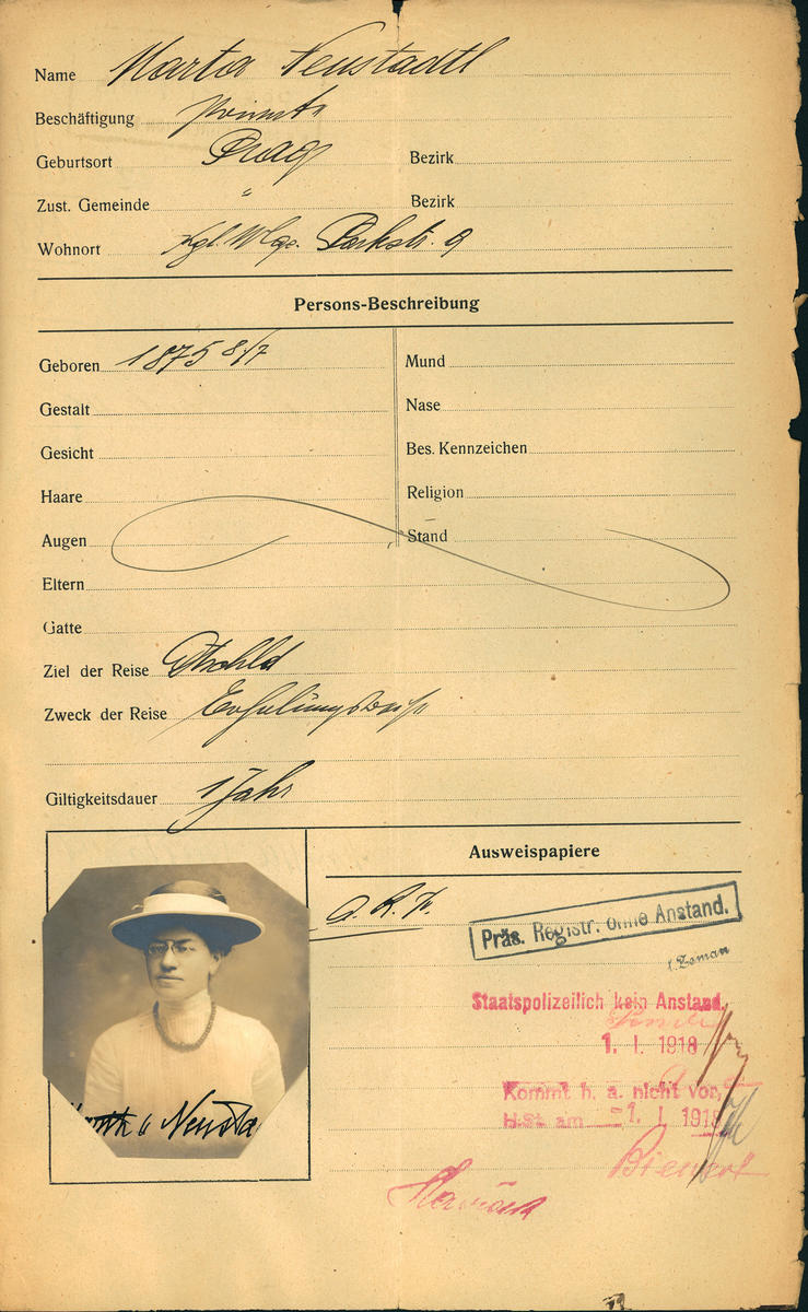 National archives Prague > Police Directorate Prague > 1931-1940 > N > Neustadtlová Marta