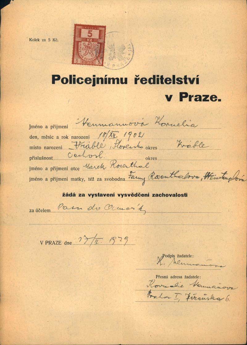 National archives Prague > Police Directorate Prague > 1941-1950 > N > Neumann Kornelie