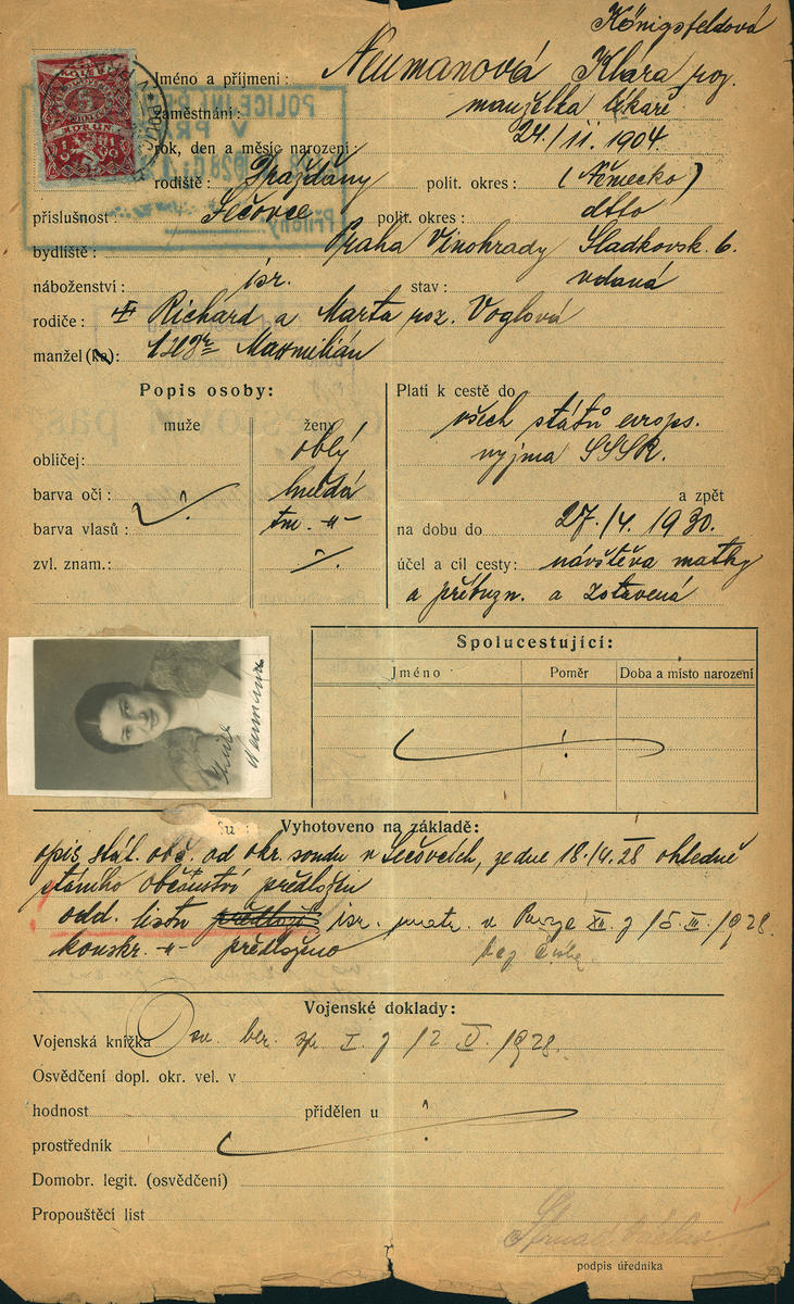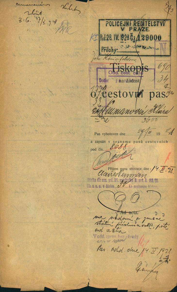 Neumannová Klara: Žádost o vydání cestovního pasu
