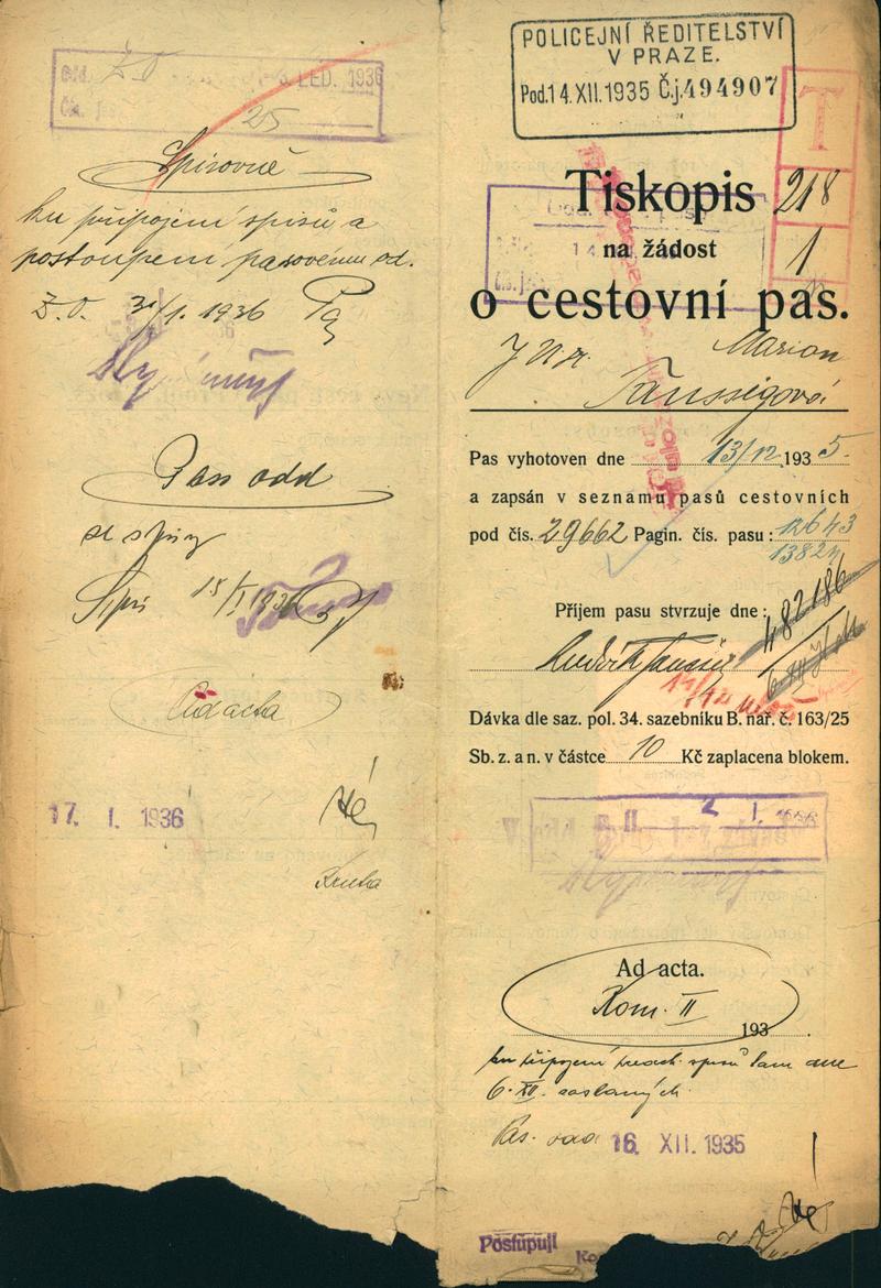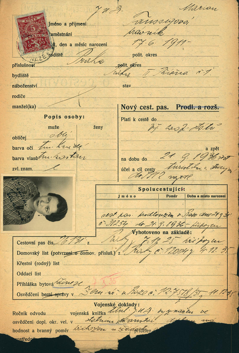 Neumannová Marion: Žádost o vydání cestovního pasu