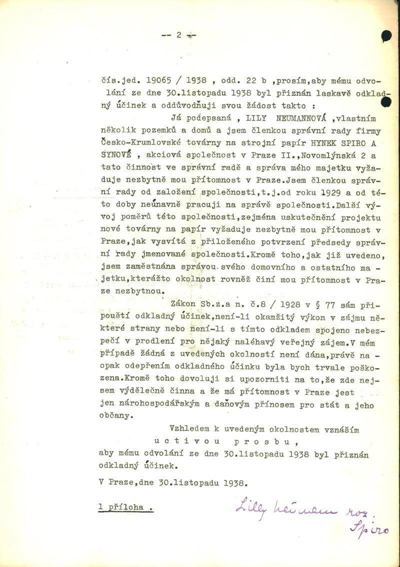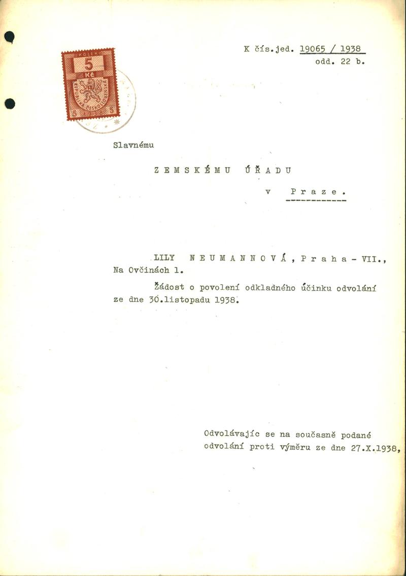 Neumannová Lilly: Odvolání proti úřednímu výměru