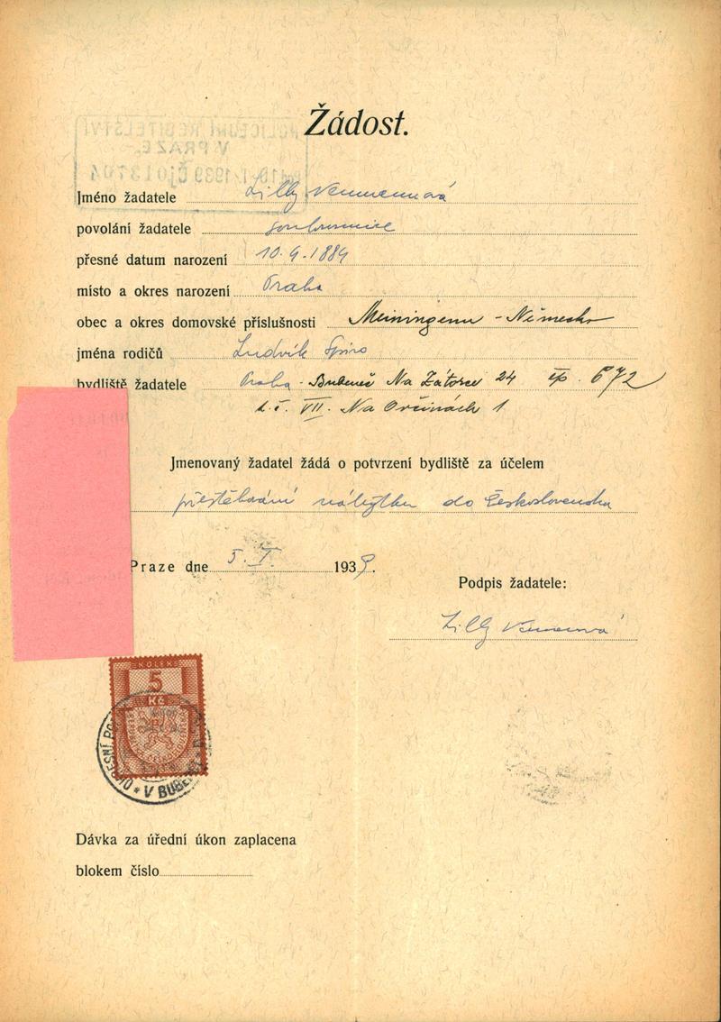 Neumannová Lilly: Žádost o potvrzení bydliště