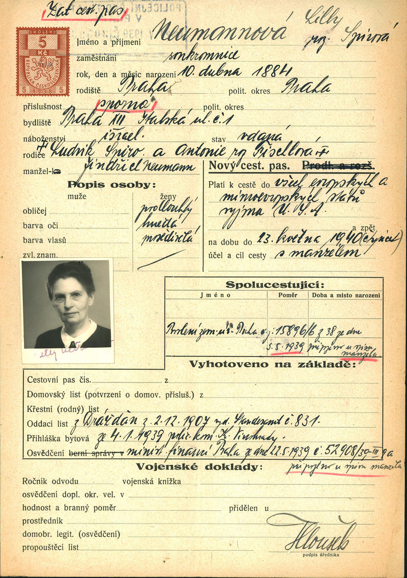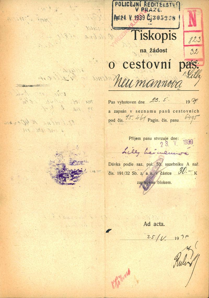 Neumannová Lilly: Žádost o vydání prozatímního cestovního pasu