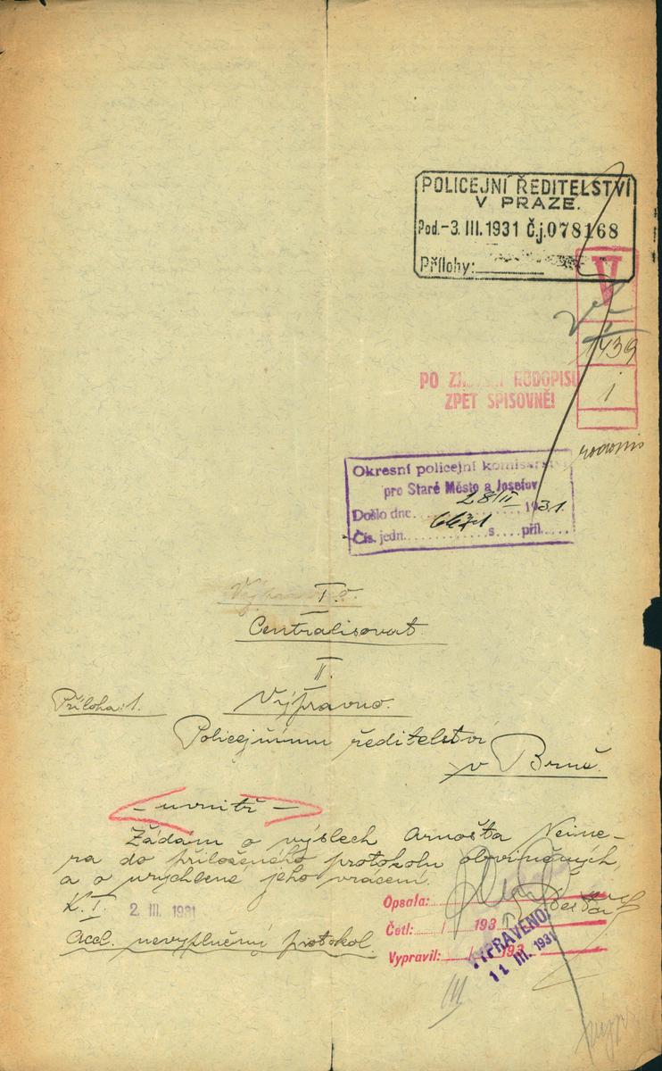Neiner Arnošt: Žádost o výslech