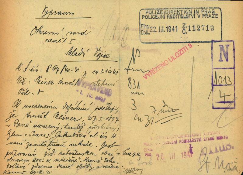 National archives Prague > Police Directorate Prague > 1941-1950 > N > Neiner Arnošt
