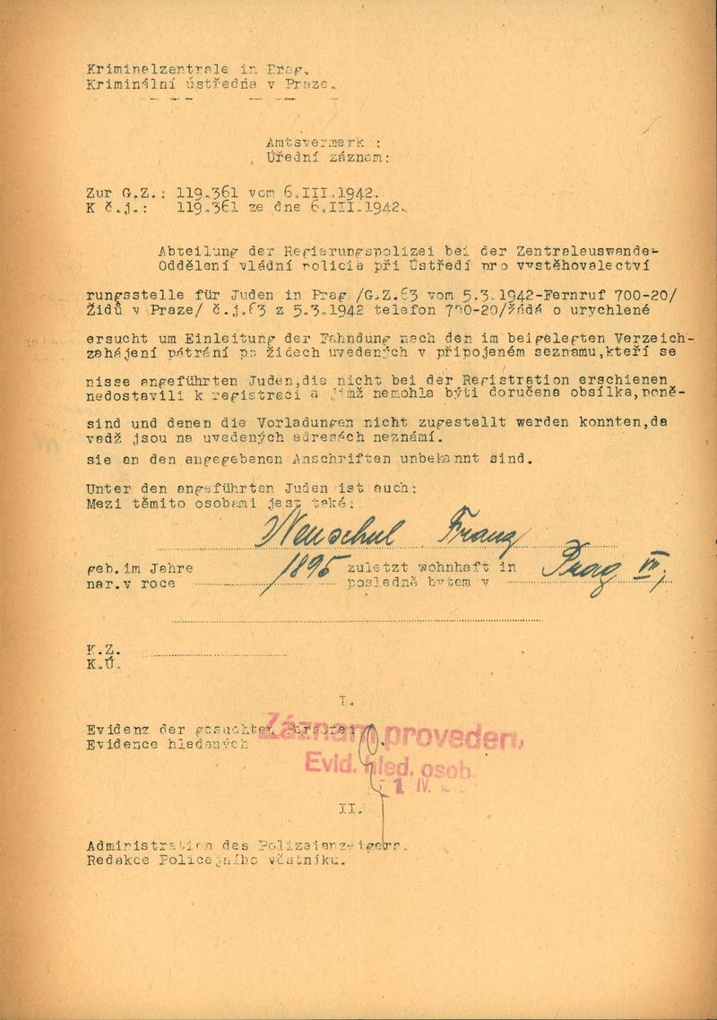 Neuschul František: Pátrání po neregistrovaných Židech