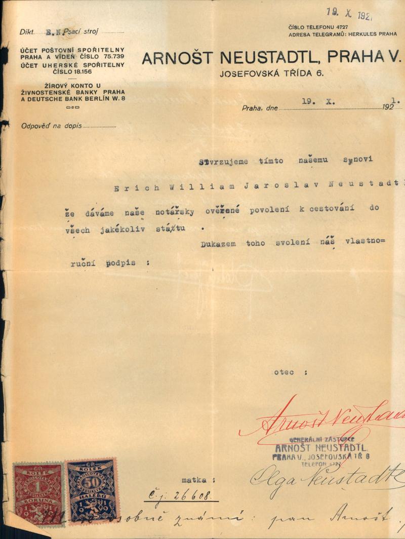 Neustadtl Erich Wiliam: Souhlas s vydáním cestovního pasu