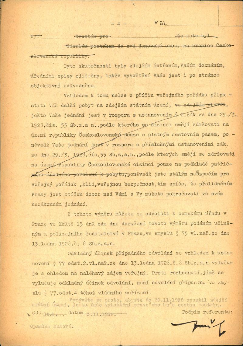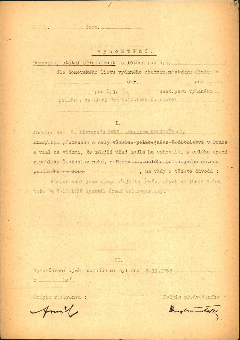 Neustadtl Arnošt: Výzva k opuštění území republiky