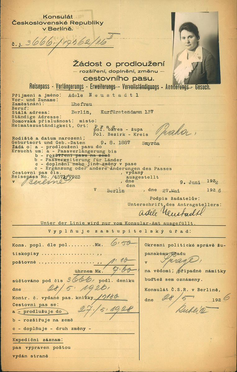 Neustadtlová Adéla: Žádost o prodloužení cestovního pasu