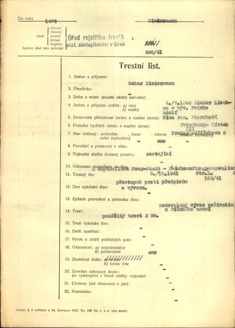 National archives Prague > Police Directorate Prague > 1941-1950 > N > Niedermann Oskar