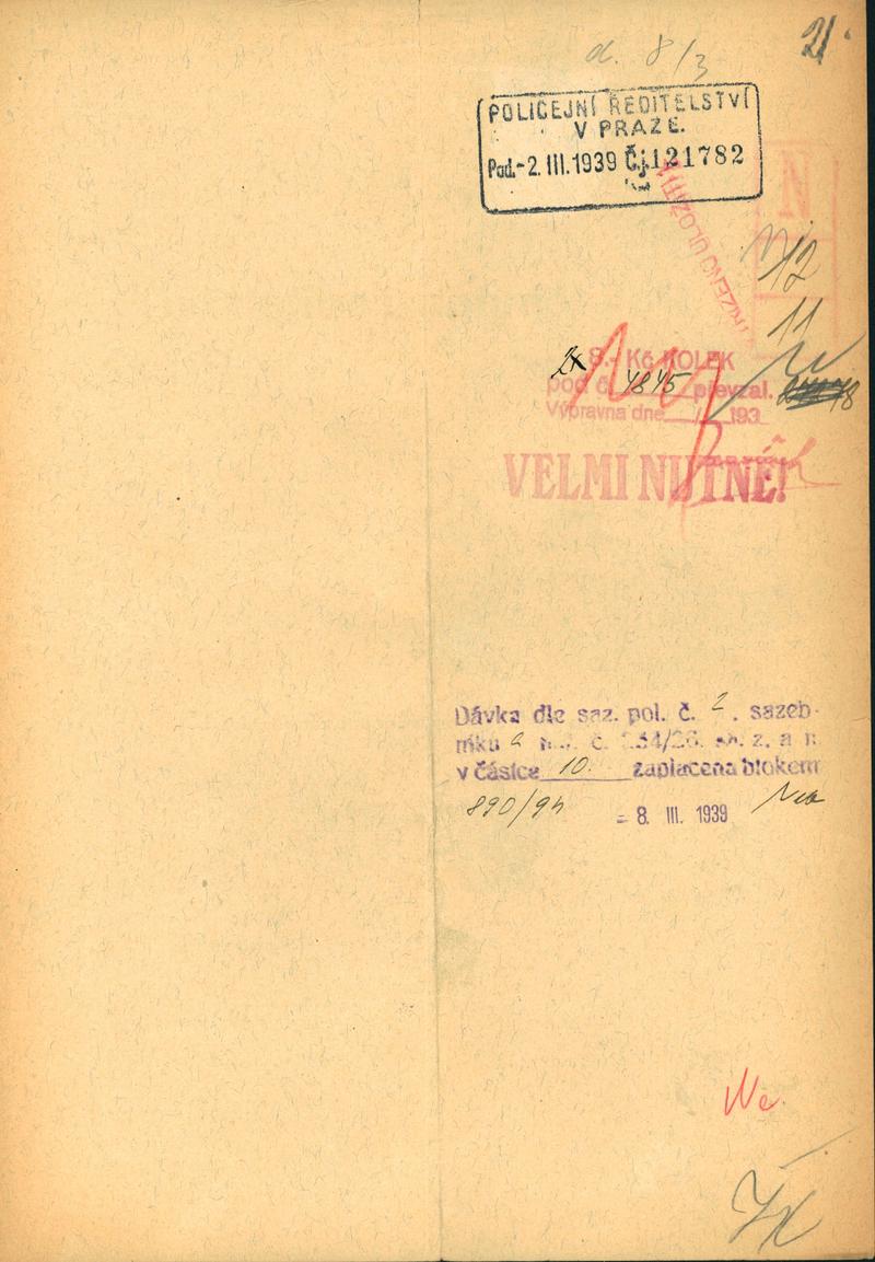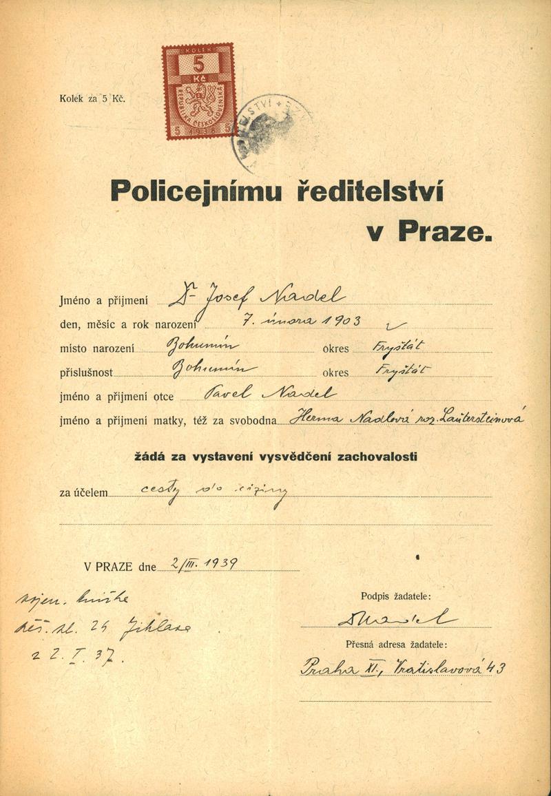Nadel Josef: Žádost o vystavení vysvědčení zachovalosti