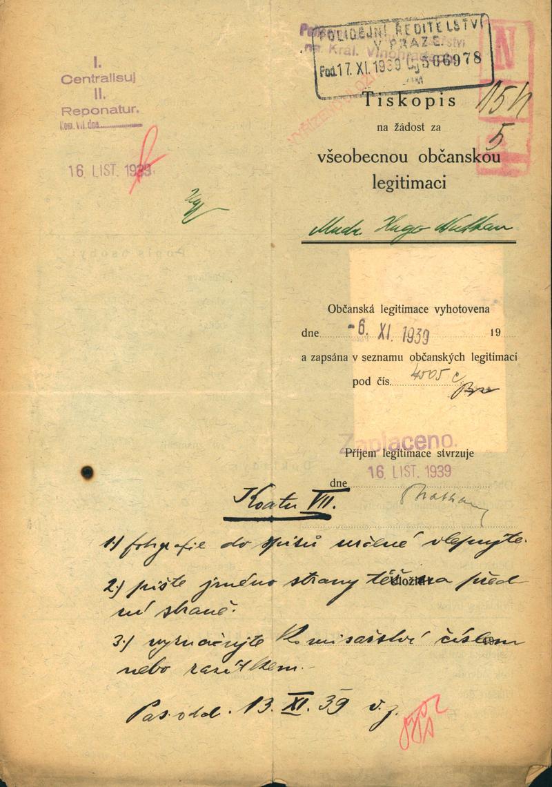 Nathan Hugo: Žádost o vydání občanské legitimace