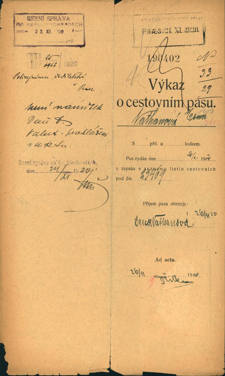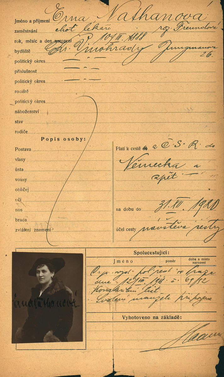 Nathanová Erna: Žádost o vydání cestovního pasu
