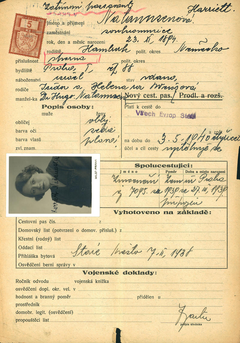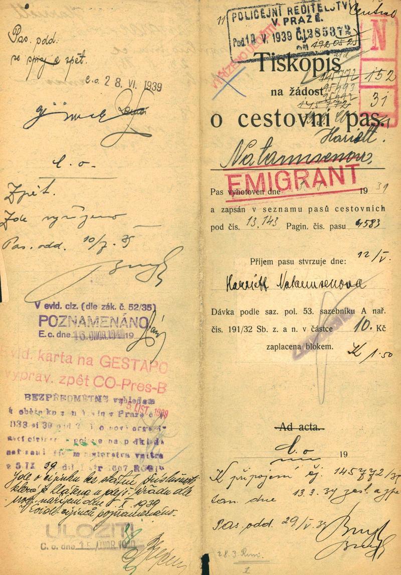 Natannsenová Harrieta: Žádost o vydání prozatímního cestovního pasu