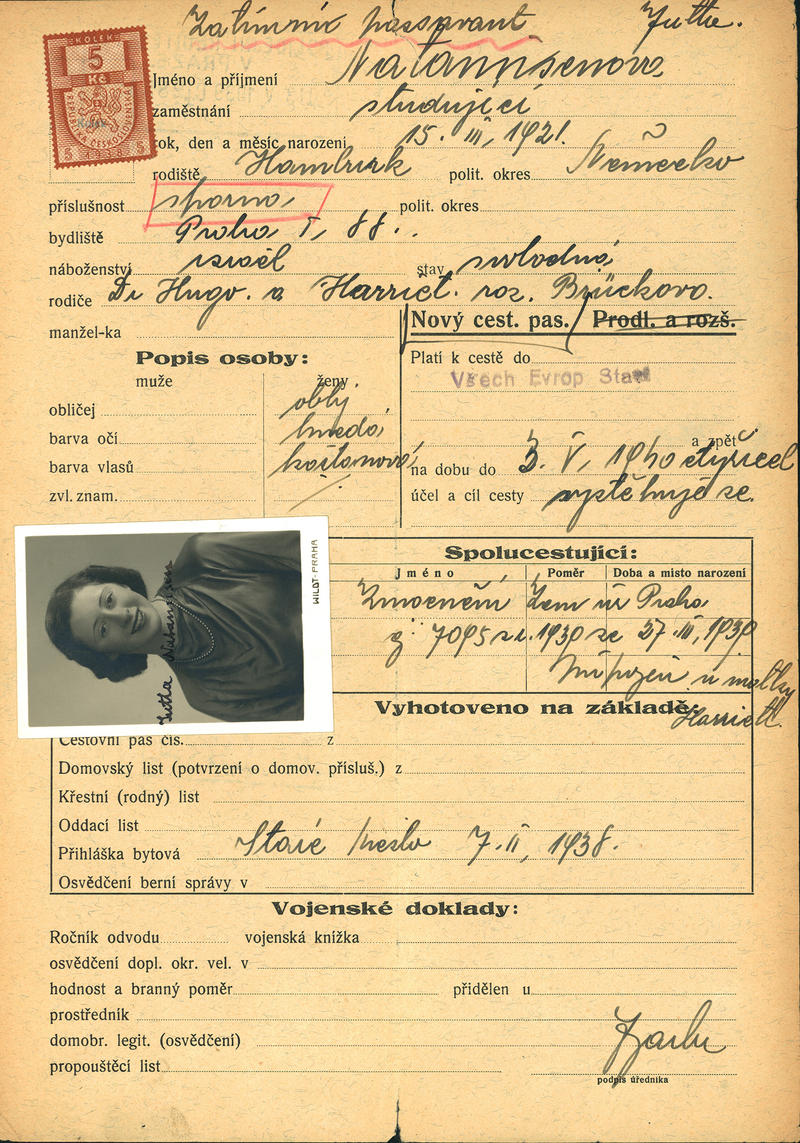 Natannsenová Juta: Žádost o vydání prozatímního cestovního pasu