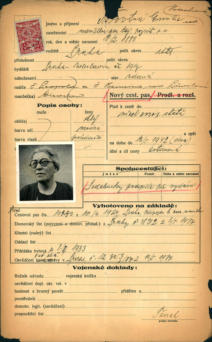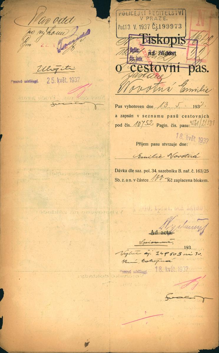 Novotná Emilie: Žádost o vydání cestovního pasu