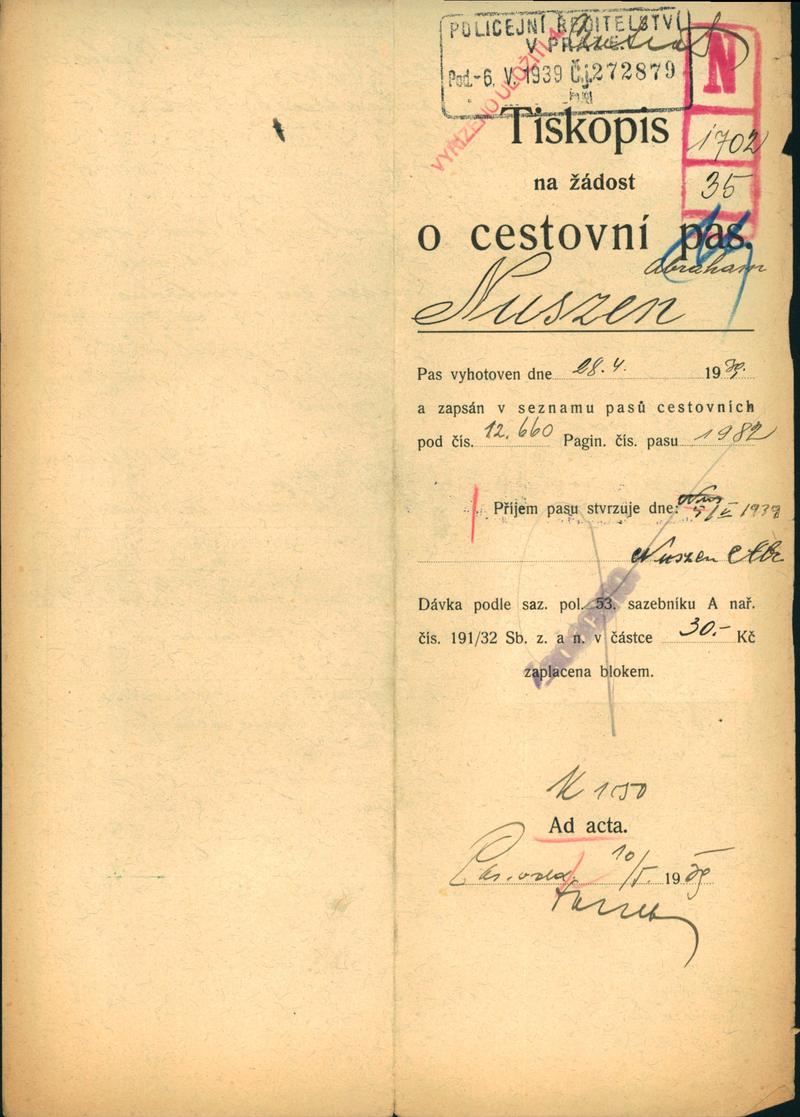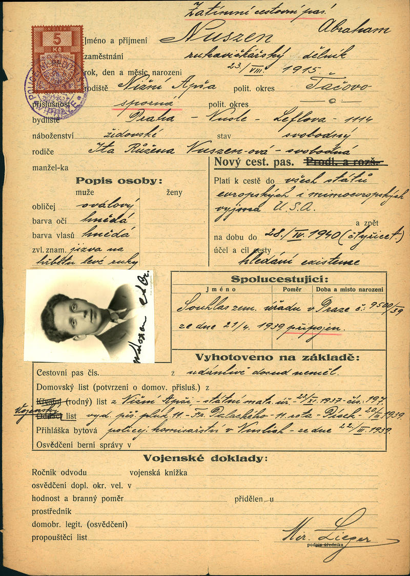 Nuszen Abraham: Žádost o vydání prozatímního cestovního pasu