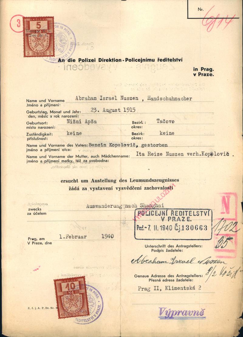 National archives Prague > Police Directorate Prague > 1941-1950 > N > Nuszen Abraham