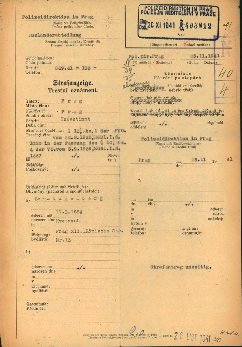 National archives Prague > Police Directorate Prague > 1941-1950 > N > Nagelbergová Berta