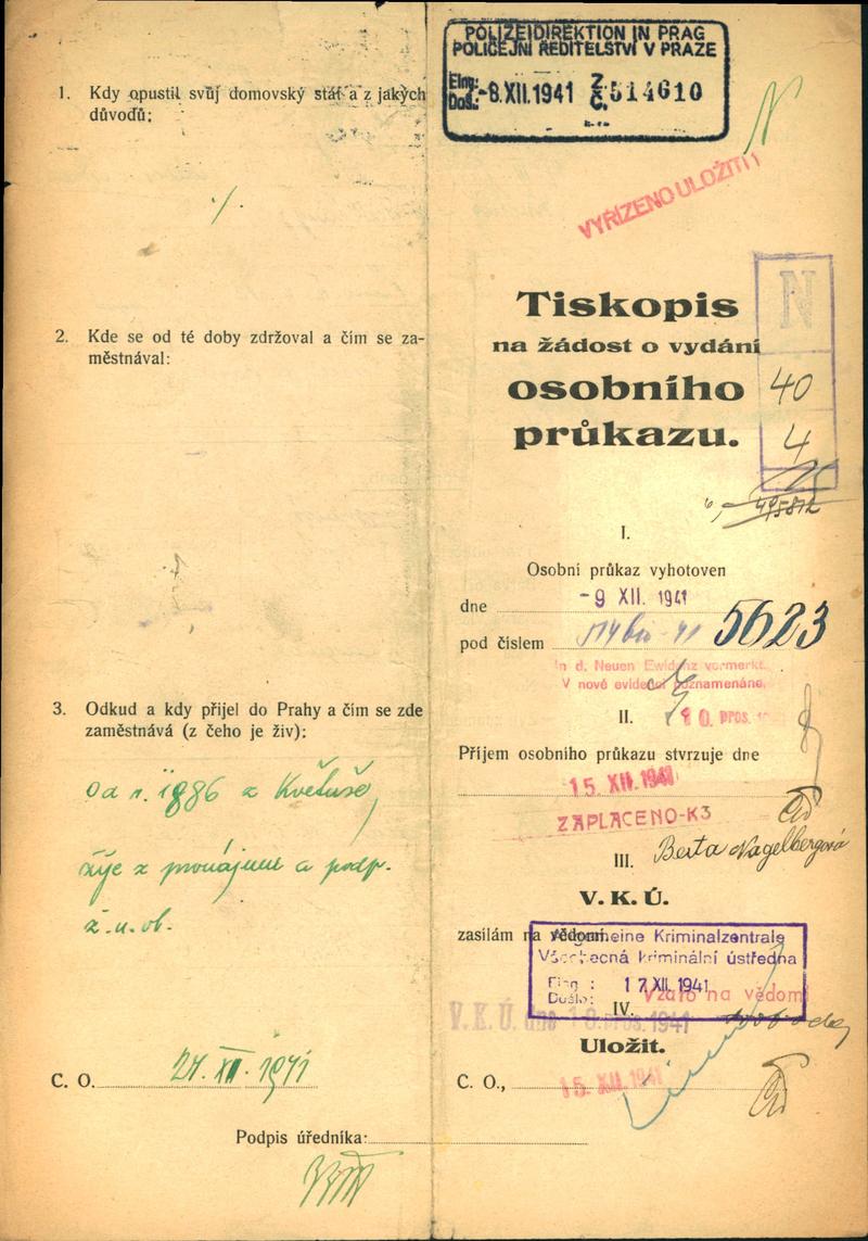 National archives Prague > Police Directorate Prague > 1941-1950 > N > Nagelbergová Berta