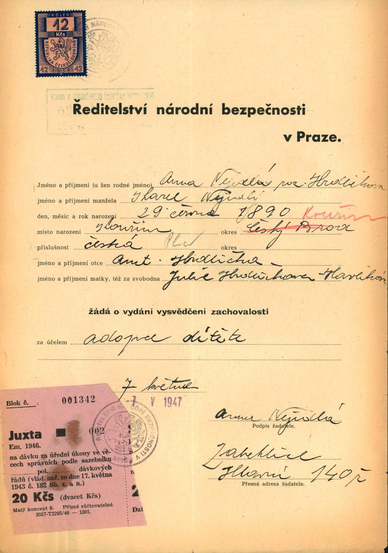 National archives Prague > Police Directorate Prague > 1941-1950 > N > Nejedlá Anna
