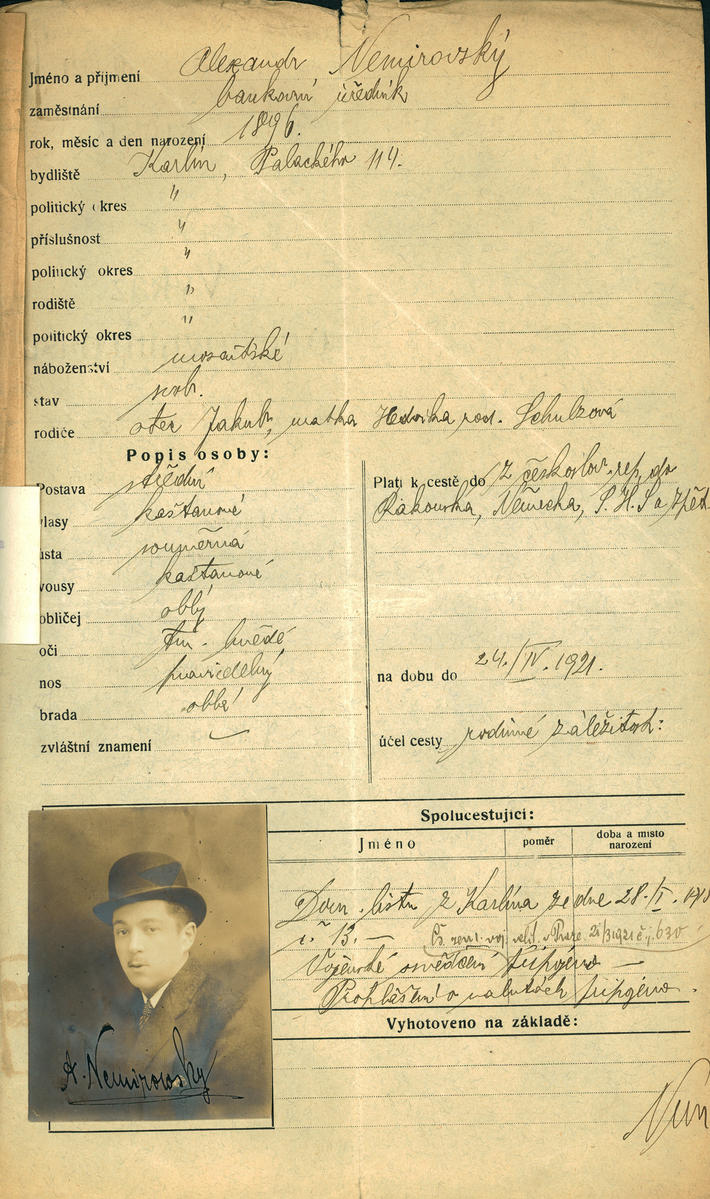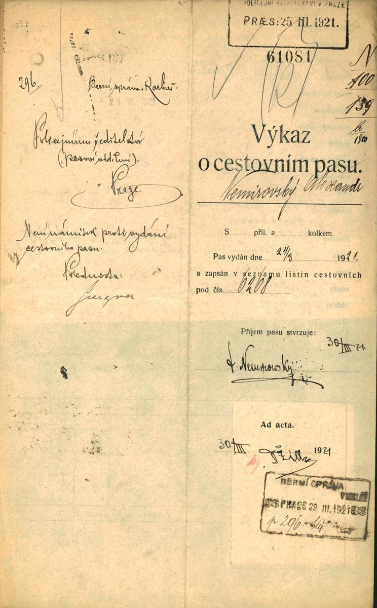 Nemirovský Alexandr: Žádost o vydání cestovního pasu