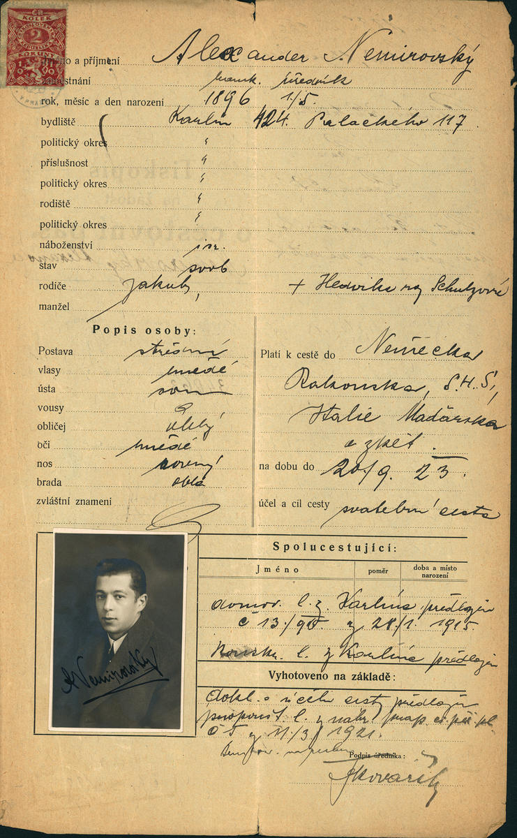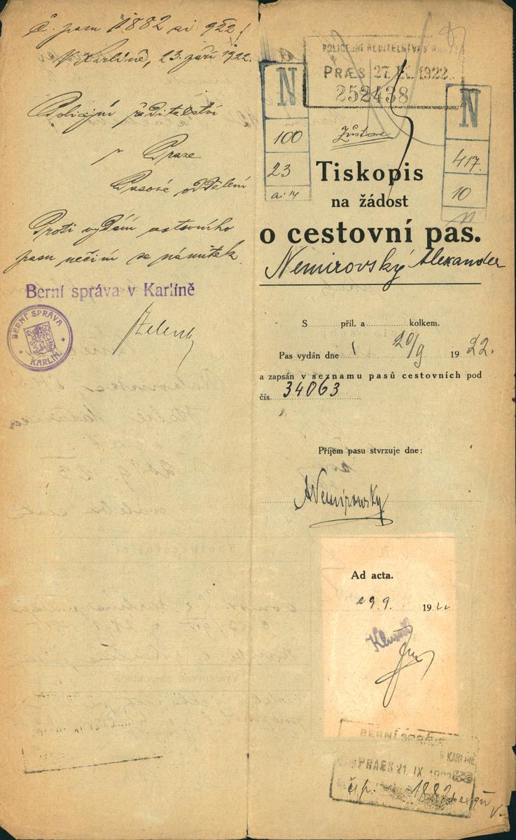 Nemirovský Alexandr: Žádost o vydání cestovního pasu