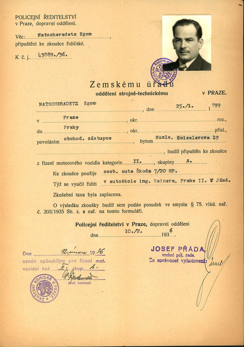 Natscheradetz Egon: Připuštění k řidičské zkoušce