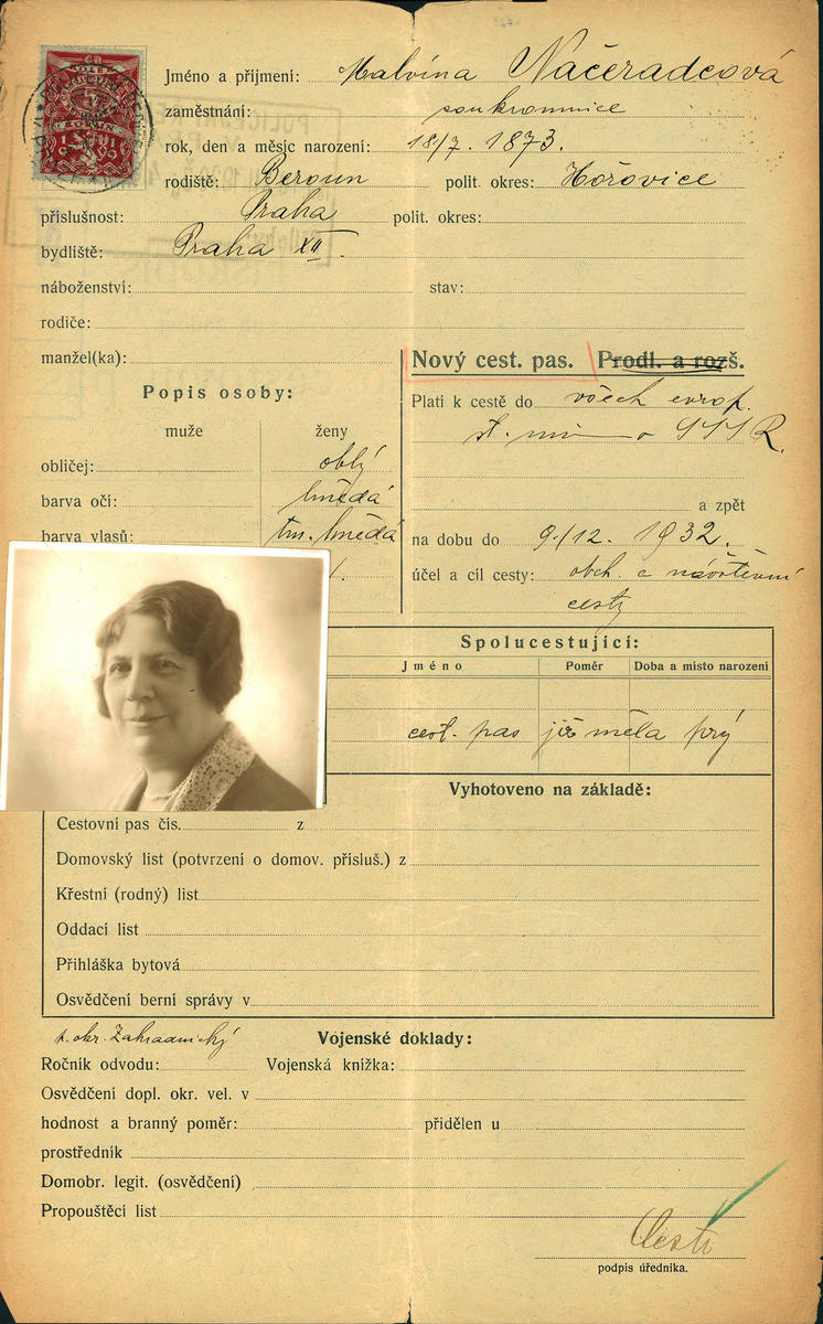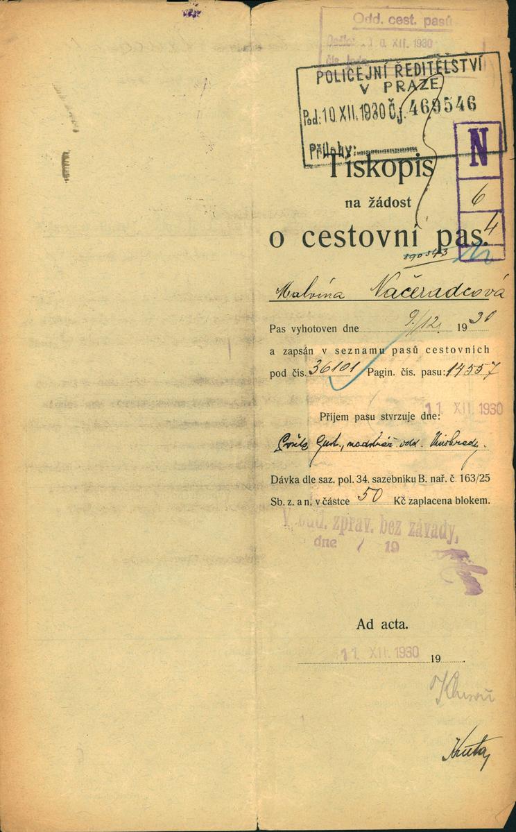 Načeradcová Malvína: Žádost o vydání cestovního pasu